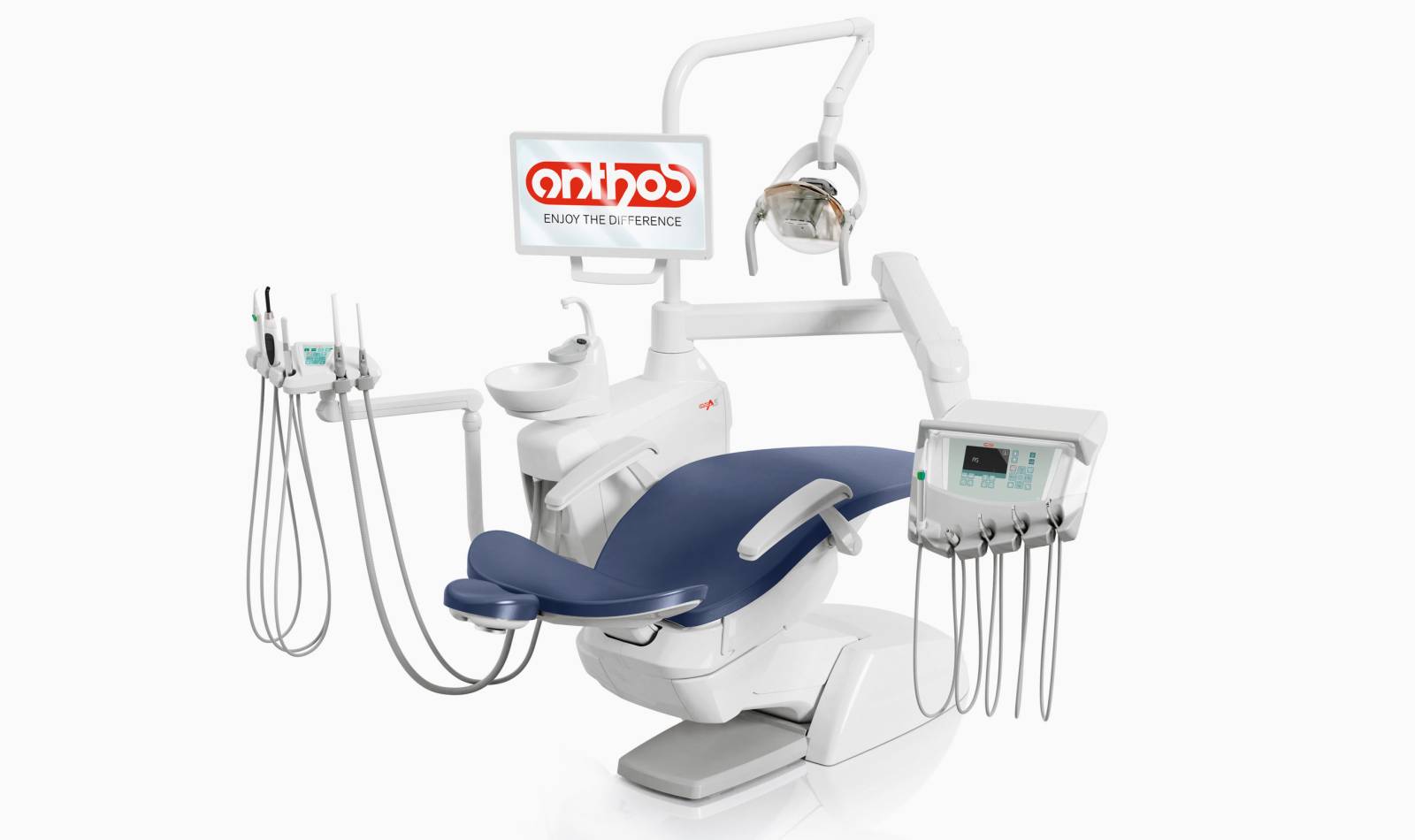 Le fauteuil dentaire A5 d'Anthos est un équipement de haute qualité, conçu pour offrir un confort optimal aussi bien au dentiste qu'au patient. Il se distingue par sa polyvalence, son design moderne et ses nombreuses fonctionnalités.
